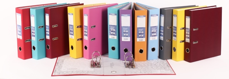 Изготавливаются из плотного пластика с хромированными механизмами и фурнитурой, не подверженными коррозии. Во всех изделиях предусмотрена система маркировки на корешке, что обеспечивает удобство систематизации документов и быстрый поиск. Выпускаются в широкой гамме цветов и в различных вариантах исполнения.