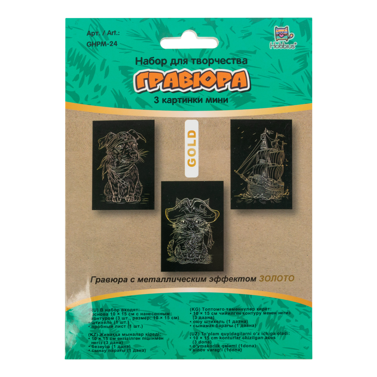 "Hobbius" GHPM-24 Набор для творчества "Гравюра мини" 10 x 15 см 1 х 3 шт