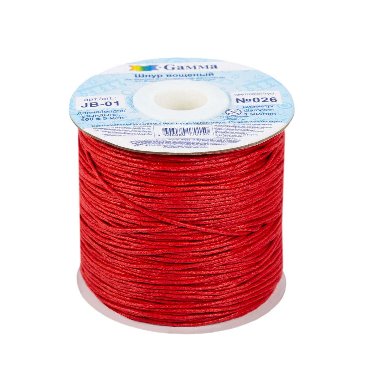 Шнур "Gamma" 1 мм JB-01 вощеный 100 м ± 5 м №026 красный