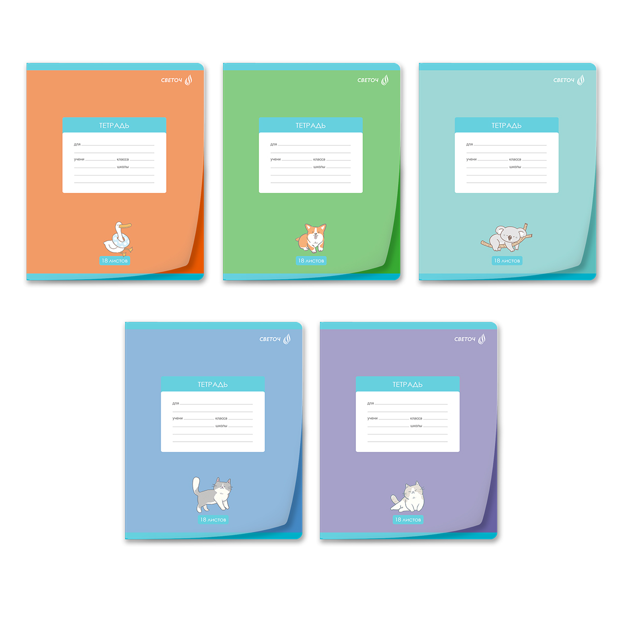 "Светоч" Т67 Тетрадь ученическая школьная с пластик. обложкой 180 мкм., цвет.запечат.титул лист A5 18 л. на скобе 65 г/кв.м , белизна 100 % 20 шт. клетка 01421 На контроле