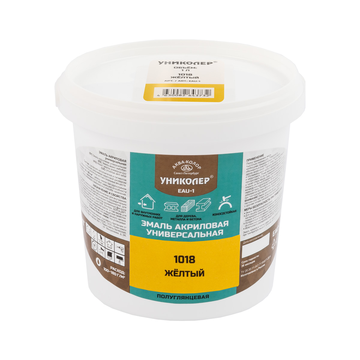 "УНИКОЛЕР" Эмаль акриловая универсальная EAU-1 RAL 1018 желтый