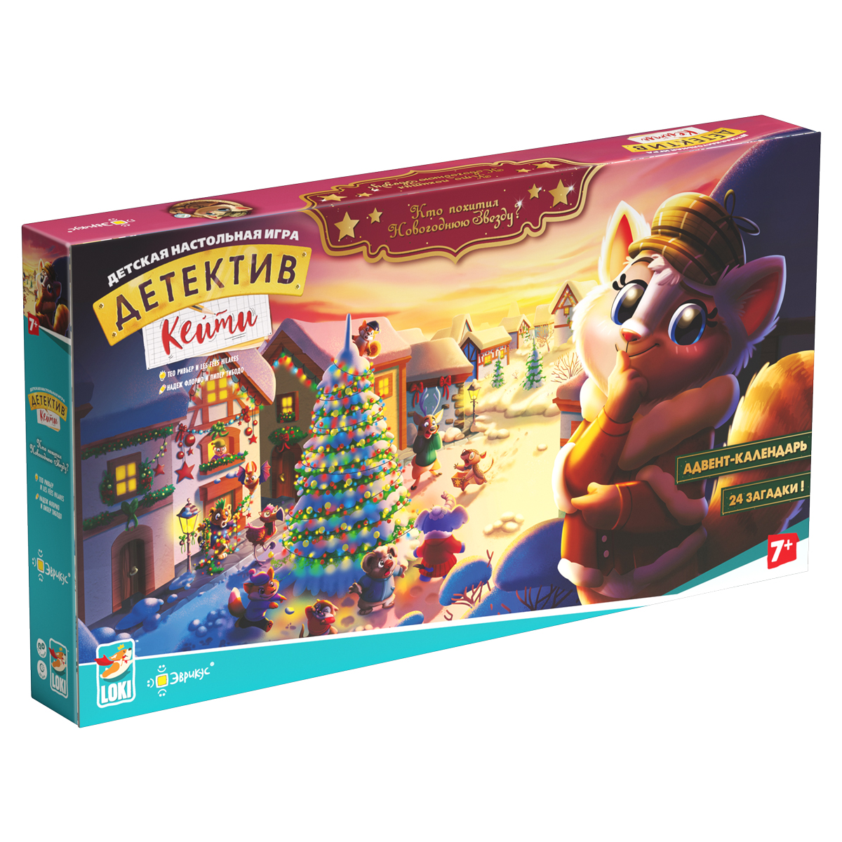 «Детектив Кейти. Адвент-календарь» — это увлекательное расследование, которое займёт у детей 24 дня, в каждый из которых ребёнок будет открывать новое окошко, знакомиться и общаться с жителями Тайнополиса, находить улики и загадки - всё, чтобы найти виновника похищения новогодней звезды.