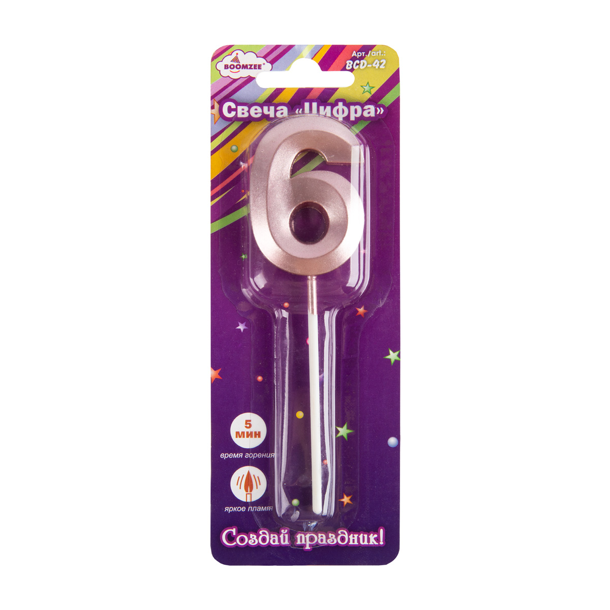 "BOOMZEE" Свеча для торта "Цифра" BCD-42 7.5 г 12 х 1 шт. 6_сиреневый