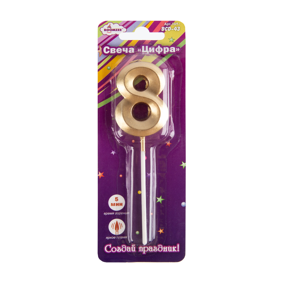 "BOOMZEE" Свеча для торта "Цифра" BCD-43 7.5 г 12 х 1 шт. 8_светлое золото