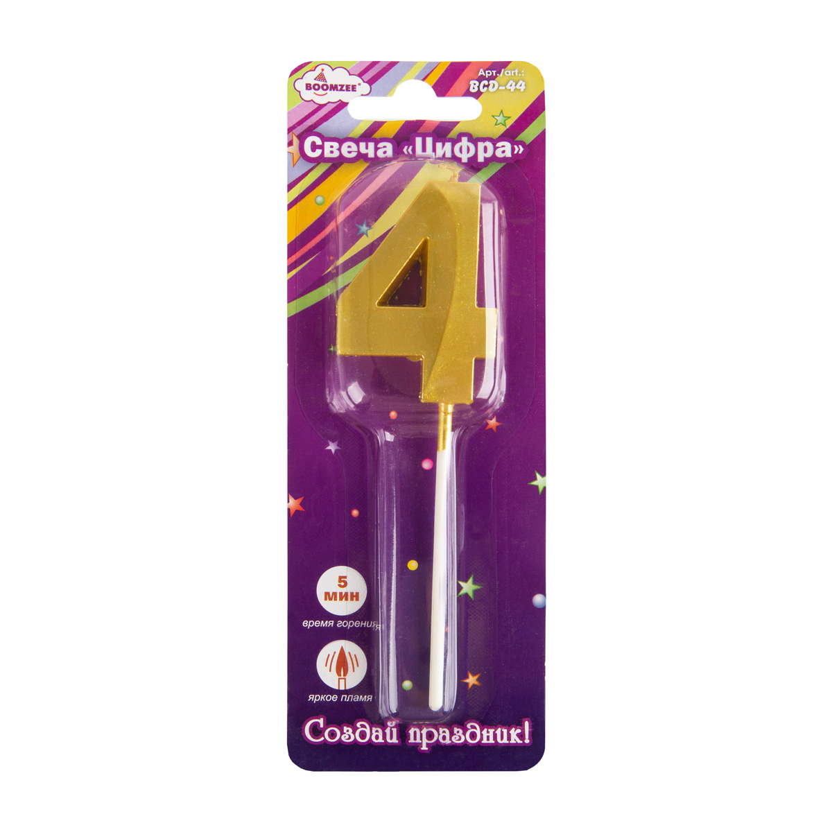 Свеча для торта "Цифра" ТМ "BOOMZEE" арт. BCD-44 . Декоративная свеча для торта "Цифра" отлично подойдёт для 4украшения праздничного торта или другого десерта для Дня Рождения, юбилея или Нового Года. Такие свечи озарят любой Ваш праздник мягким свечением, а желания, загаданные под их волшебный свет, обязательно исполнятся!