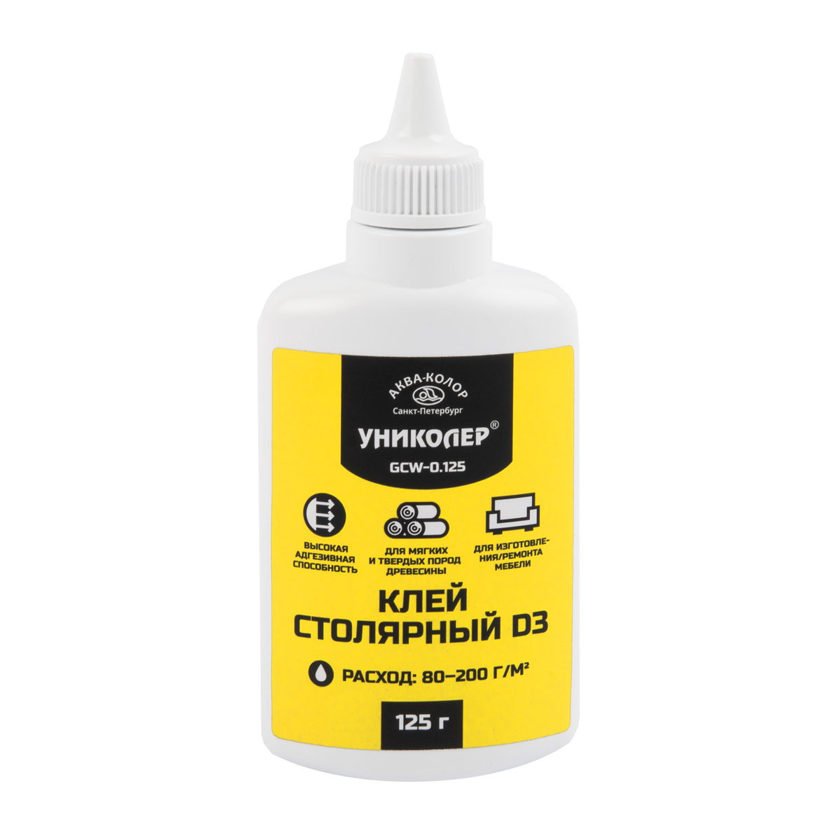 "УНИКОЛЕР" Клей столярный GCW-0.125 флакон 125 г