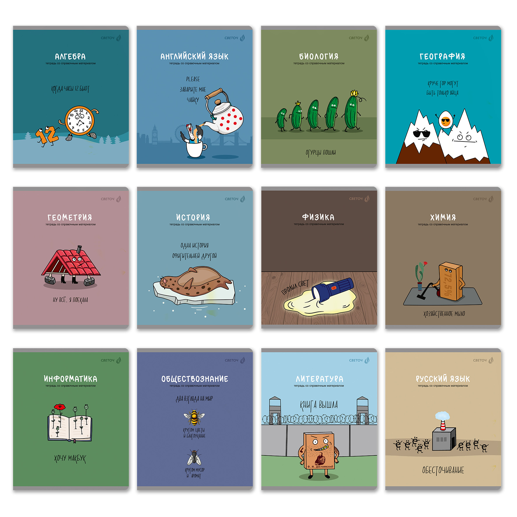 "Светоч" Т295 Комплект тетрадей со справоч.материал. "Большая перемена", выбор.лак, A5 48 л. 12 шт. на скобе 65 г/кв.м , белизна 100 % 1 шт. клетка/линия 01884 12 предметов