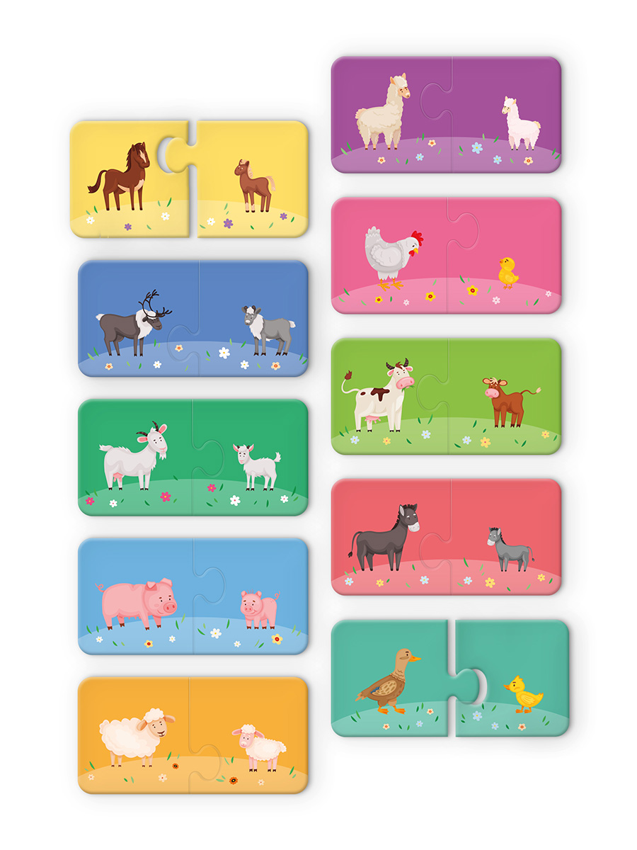 Набор содержит 10 пар пазлов, размером 13х6,5 см.
