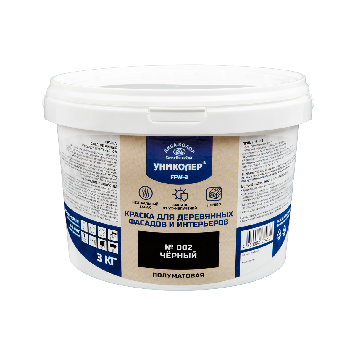 "УНИКОЛЕР" Краска для деревянных фасадов и интерьеров FFW-3 № 002 Чёрный