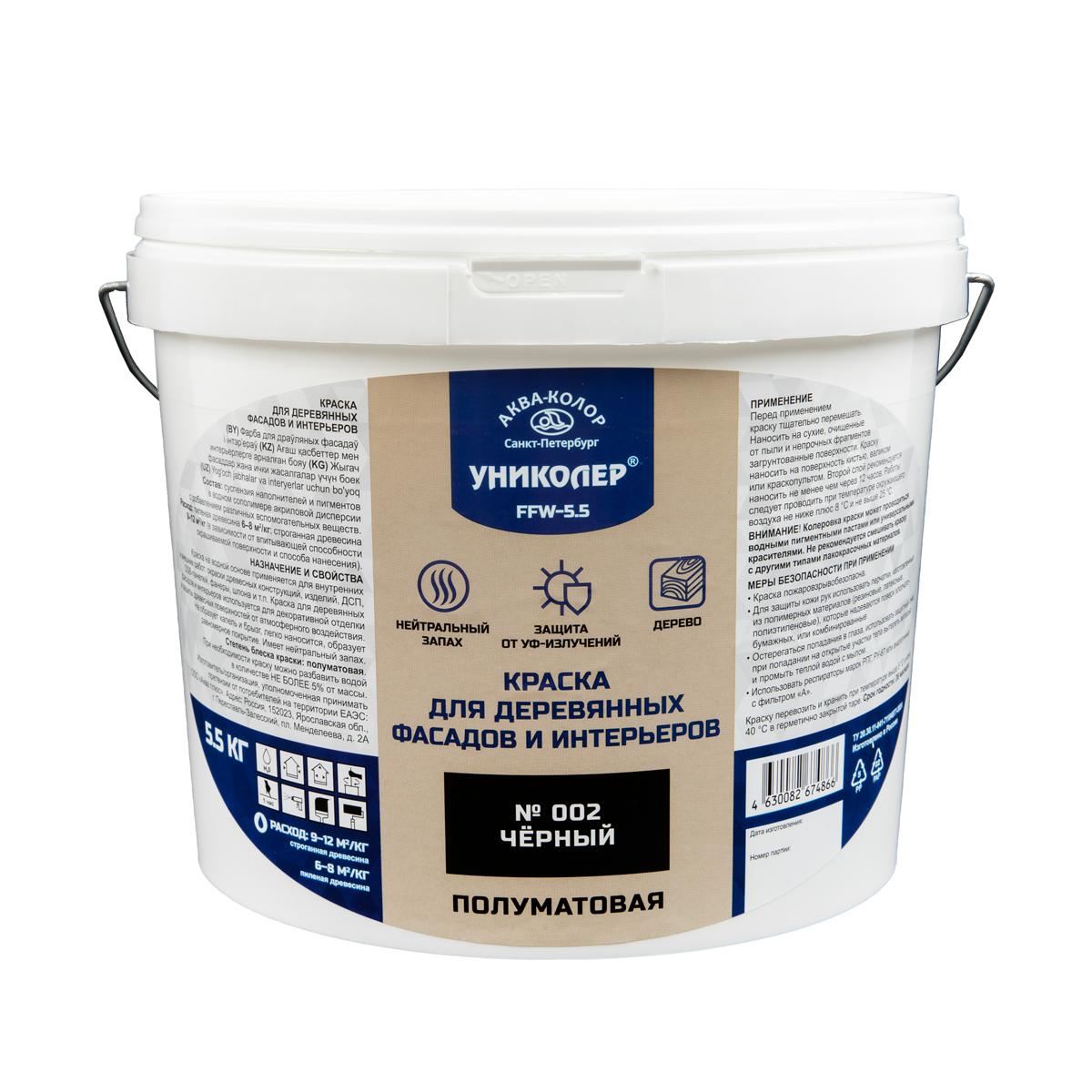 "УНИКОЛЕР" Краска для деревянных фасадов и интерьеров FFW-5.5 № 002 Чёрный