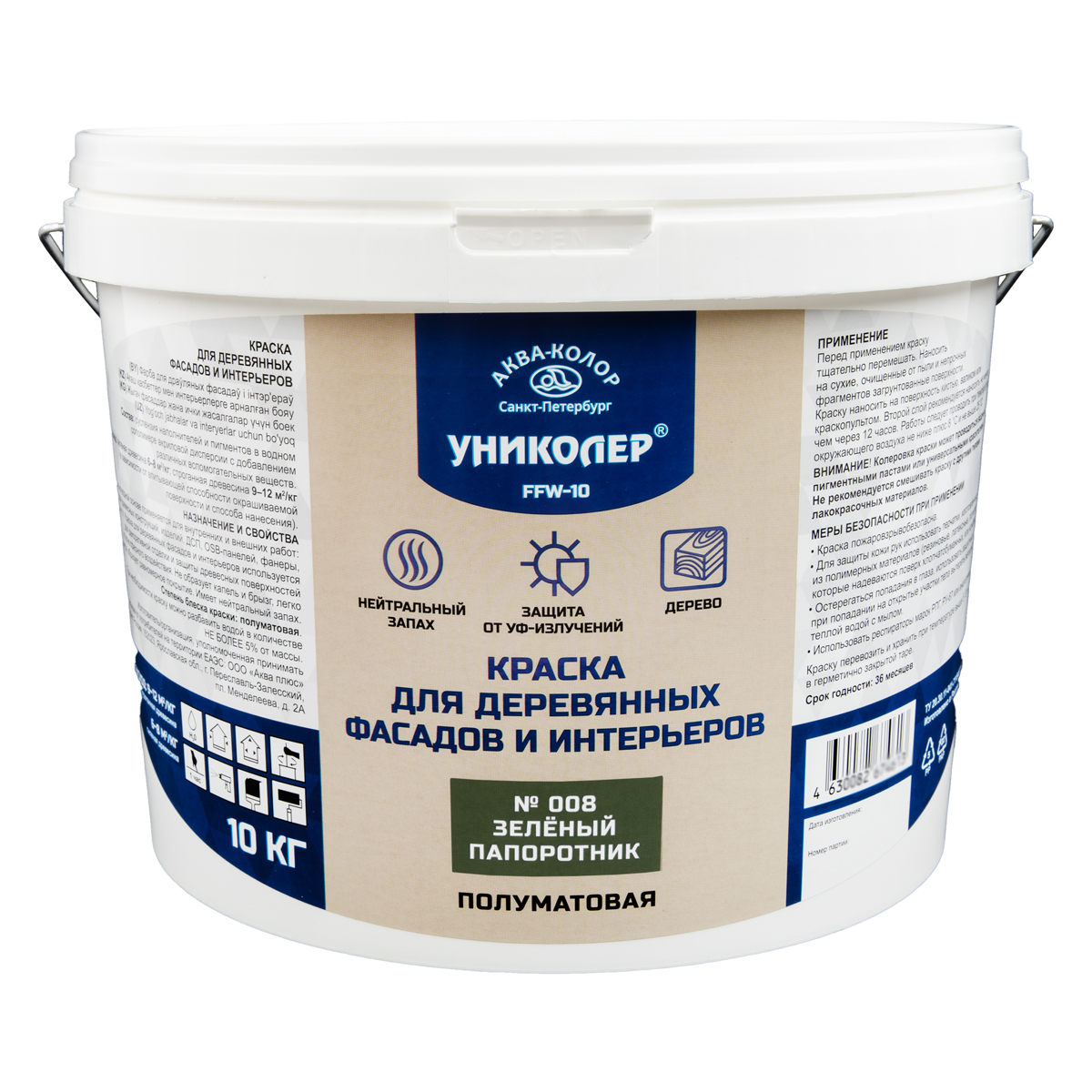 "УНИКОЛЕР" Краска для деревянных фасадов и интерьеров FFW-10 № 008 Зелёный папоротник