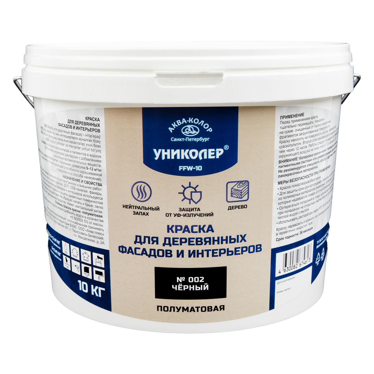 "УНИКОЛЕР" Краска для деревянных фасадов и интерьеров FFW-10 № 002 Чёрный