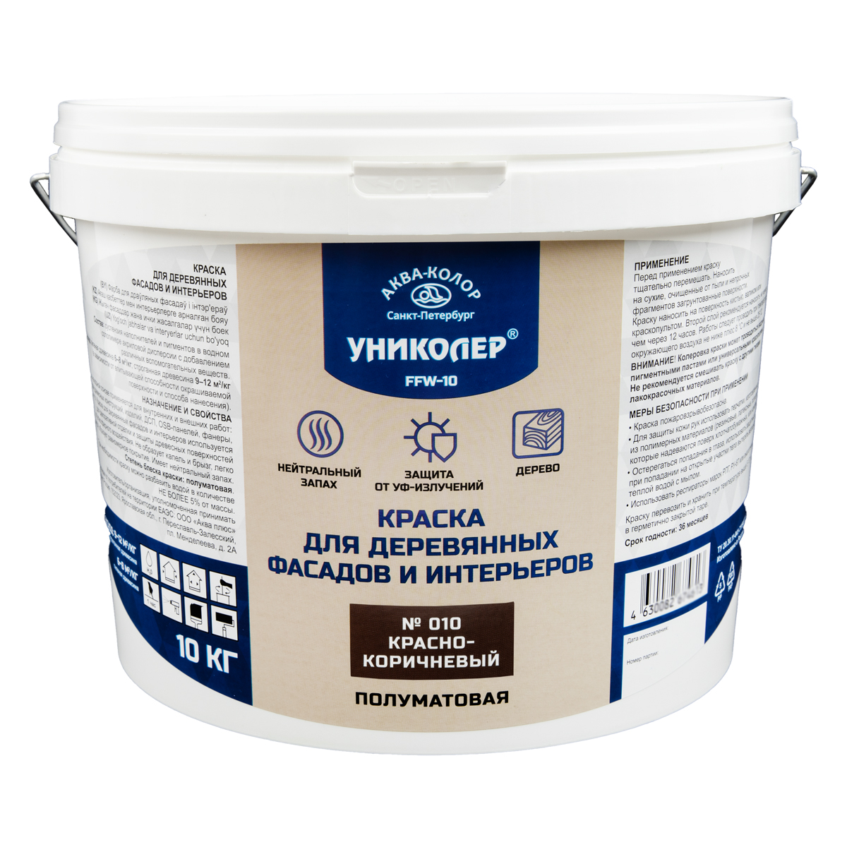 "УНИКОЛЕР" Краска для деревянных фасадов и интерьеров FFW-10 № 010 Красно-коричневый
