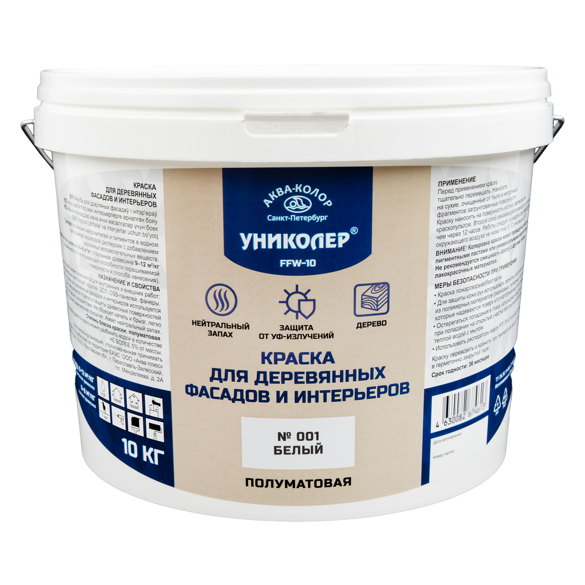 "УНИКОЛЕР" Краска для деревянных фасадов и интерьеров FFW-10 № 001 Белый