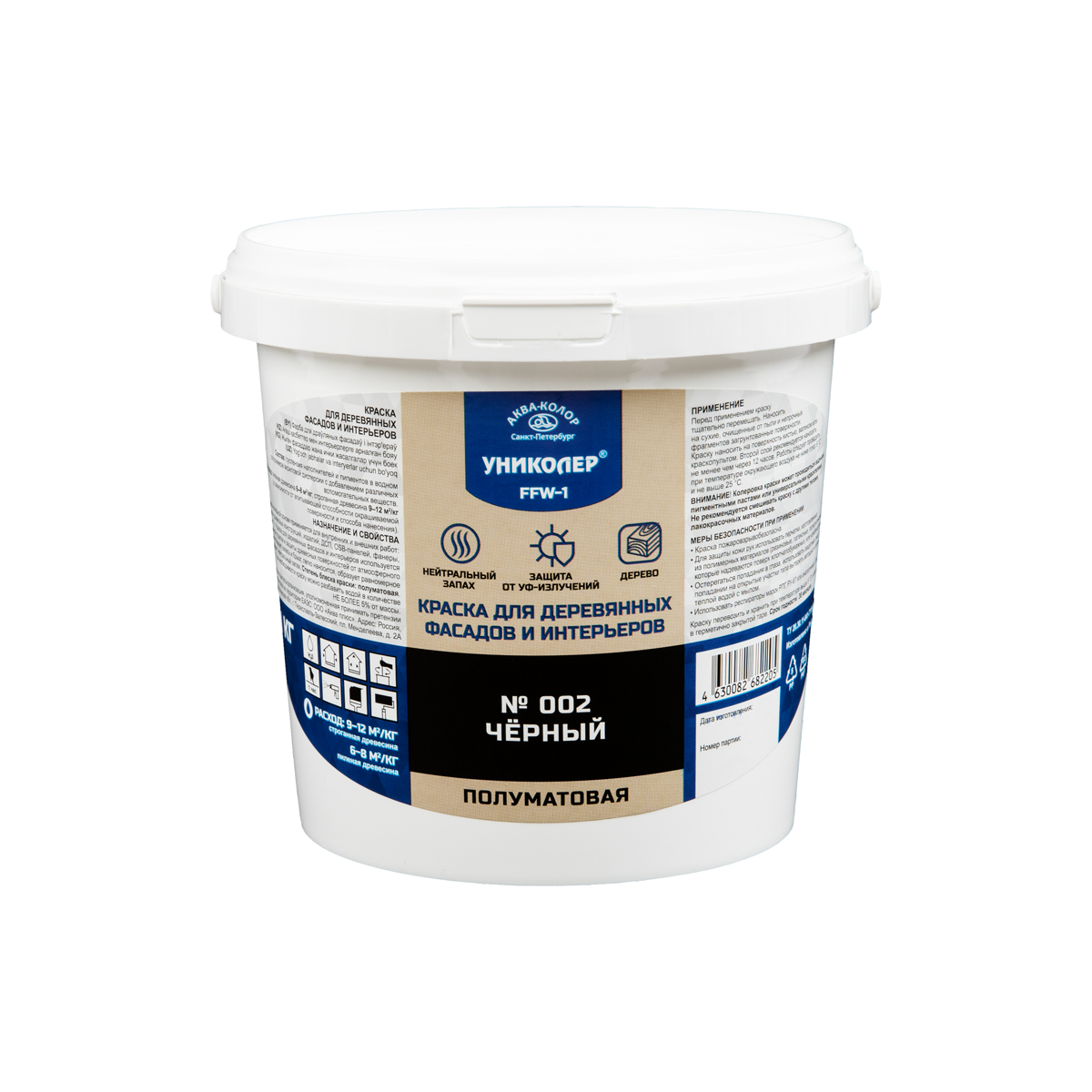 "УНИКОЛЕР" Краска для деревянных фасадов и интерьеров FFW-1 № 002 Чёрный
