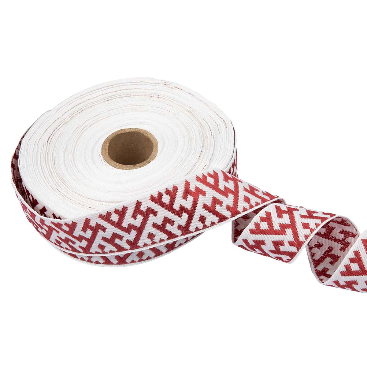 Лента жаккардовая 32 мм "Gamma" С3774 25 м отделочная "Орнамент для северных народов" рис 9302 белый-бордовый