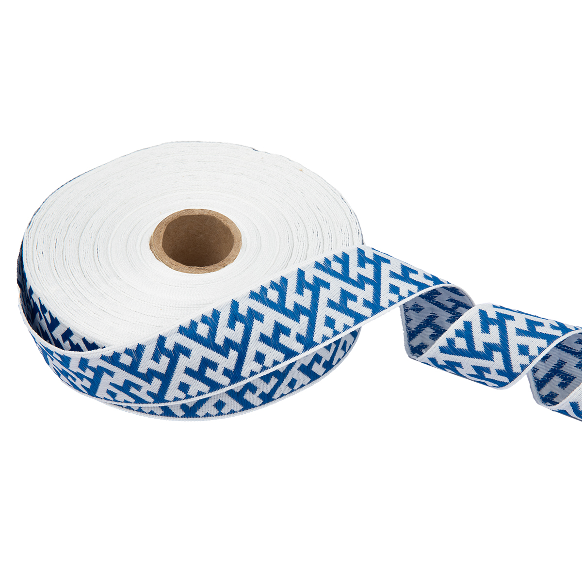 Лента жаккардовая 32 мм "Gamma" С3774 25 м отделочная "Орнамент для северных народов" рис 9302 белый-синий
