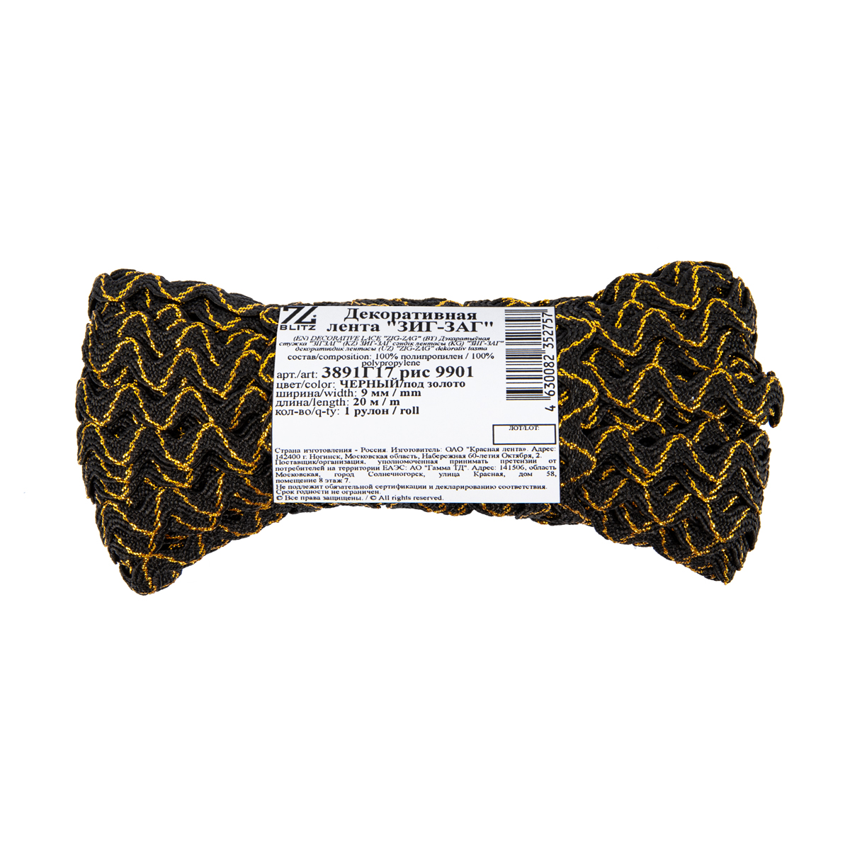 "BLITZ" 3891Г17 рис 9901 лента декоративная "ЗИГ-ЗАГ" 9 мм 20 м ЧЕРНЫЙ/под золото