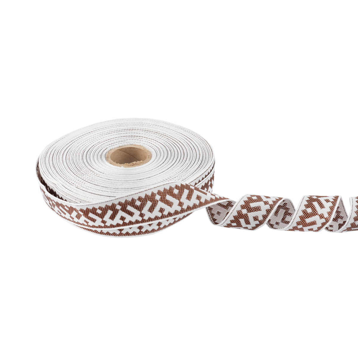 Лента жаккардовая 24 мм "Gamma" С3772 25 м Лента отделочная "Орнамент для северных народов" рис 9674 белый/коричневый