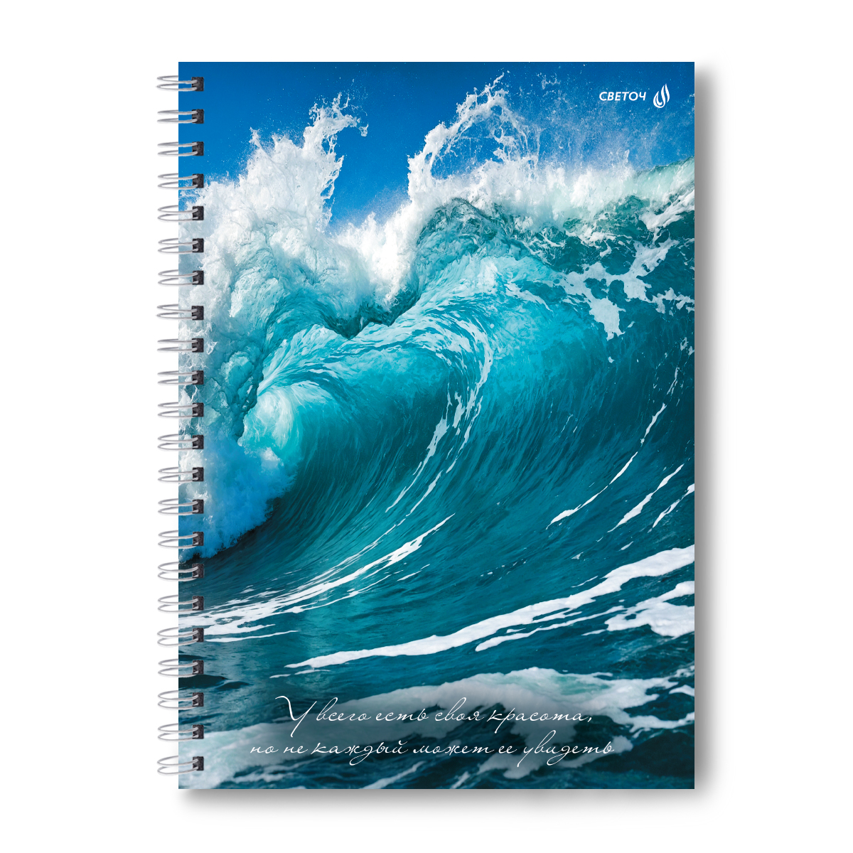 "Светоч" Т305 Тетрадь общая с запечатан. пластик. обложкой, 500 мкм., A4 80 л. на гребне 65 г/кв.м , белизна 100 % 4 шт. клетка 01921 Шумный прибой