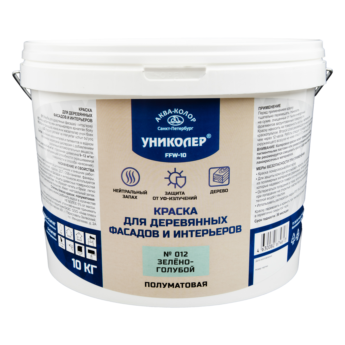 "УНИКОЛЕР" Краска для деревянных фасадов и интерьеров FFW-10 № 012 Зелёно-голубой