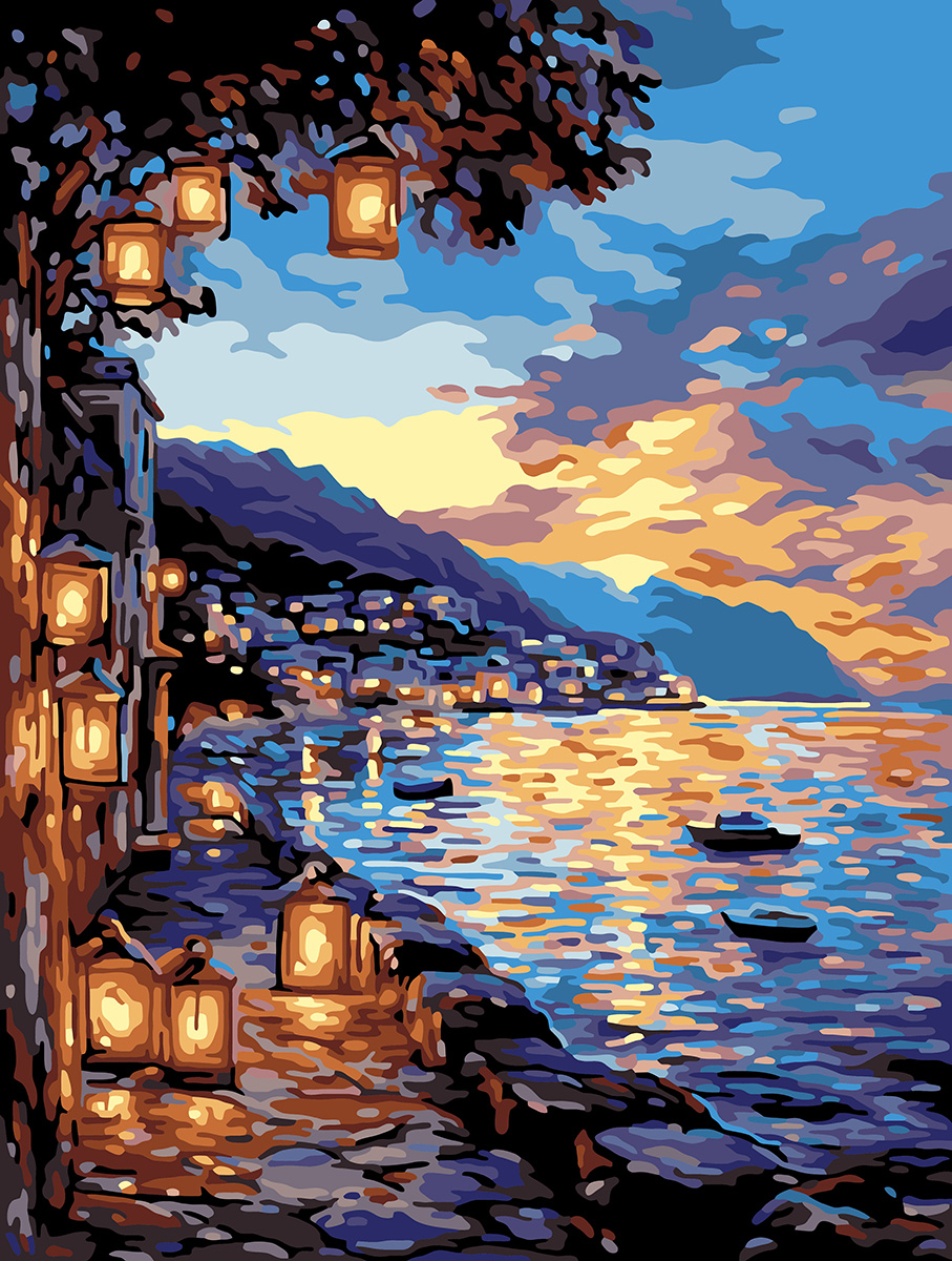 "ФРЕЯ" PNB/PMDD-394 Набор для раскрашивания по номерам ( со светодиодами ) 40 х 30 см "Вечер на берегу моря"