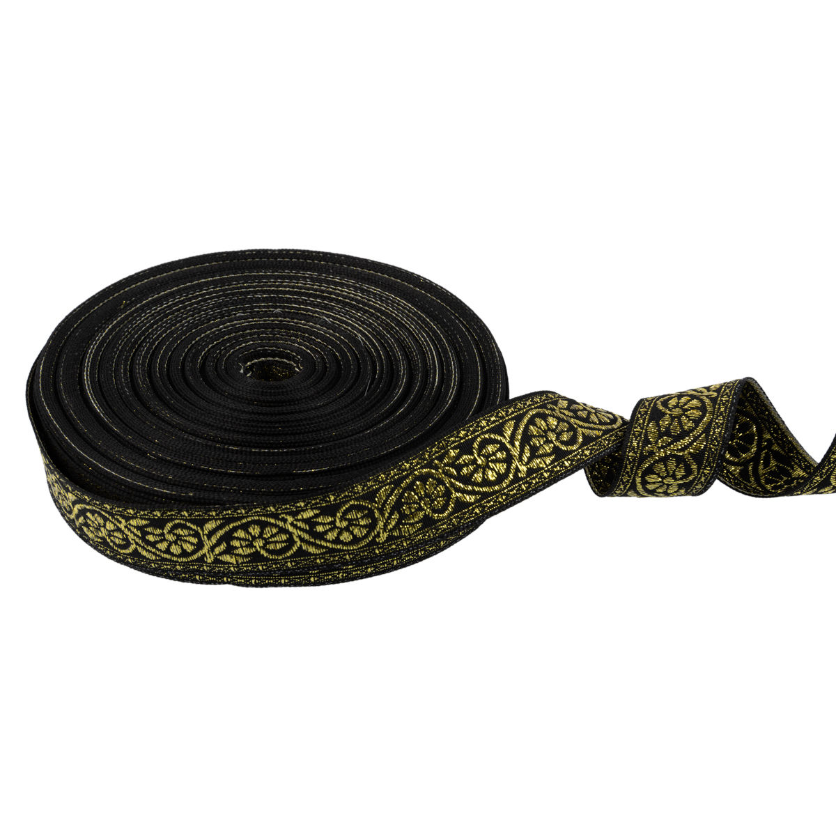 Лента жаккардовая 23 - 25 мм "BLITZ" С1857 рис. 9821В 25 м лента отделочная черный /под золото