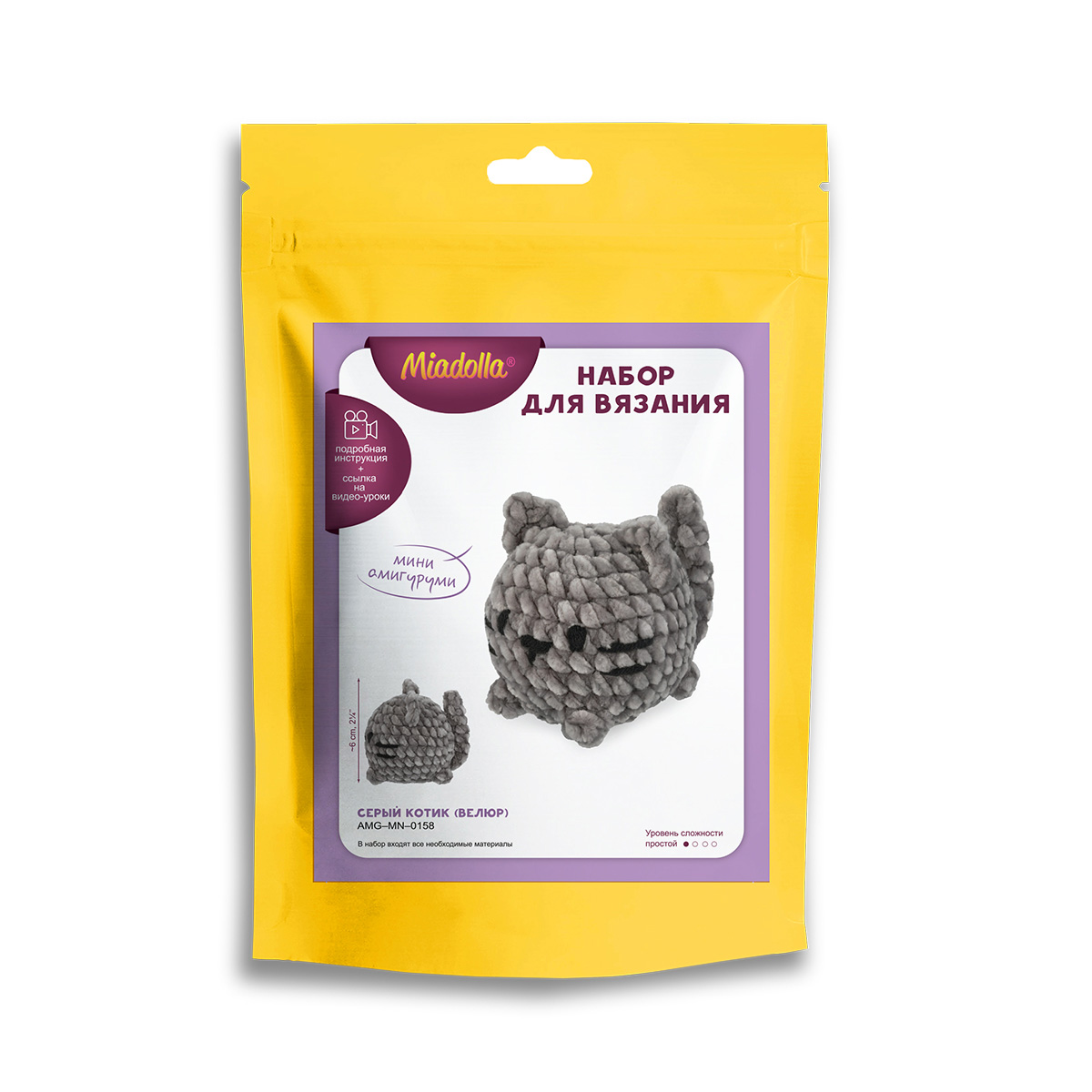 Набор для вязания "Miadolla" AMG-MN-0158 Серый котик (велюр) .