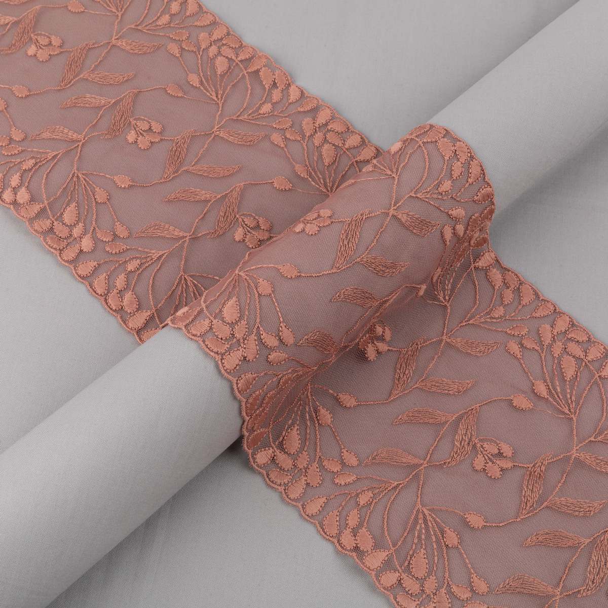 Кружево эластичное имеет ажурное плетение, что придает ему особый изыск.
