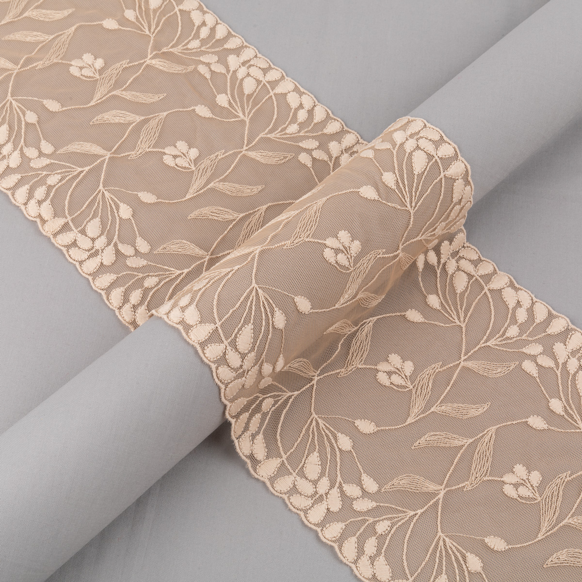 Кружево эластичное имеет ажурное плетение, что придает ему особый изыск.