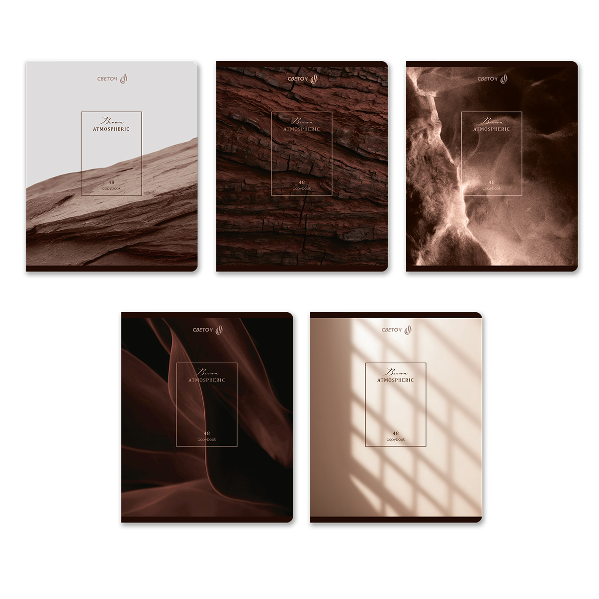 "Светоч" Т312 Тетрадь общая с запечатанной пластик. обложкой 350 мкм. A5 48 л. на скобе 60-65 г/кв.м , белизна 100 % 5 шт. клетка 01979 Горький шоколад