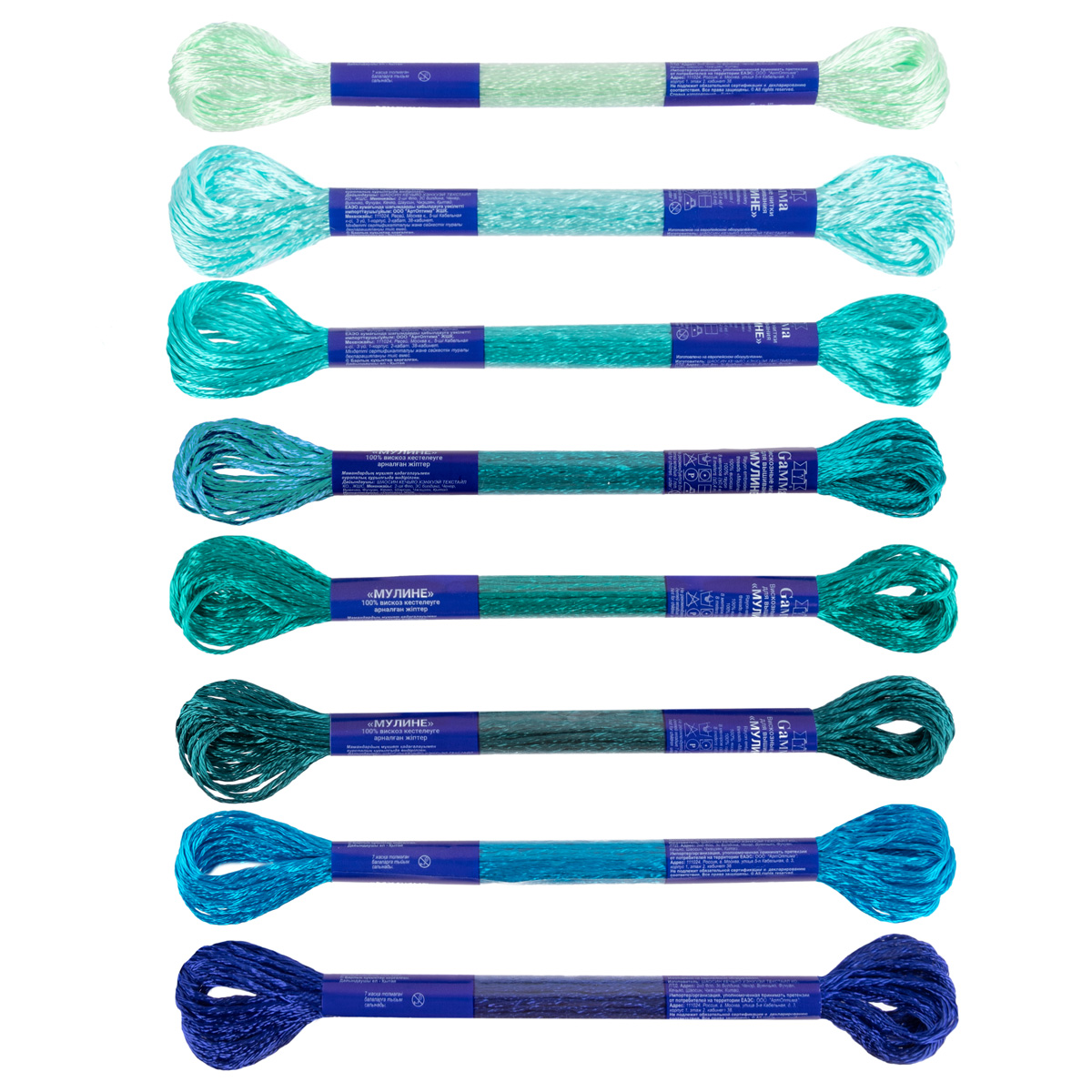 Нитки для вышивания "Gamma" набор мулине ВМ-08 / VM-08 100% вискоза 8 x 8 м №16 Павлиний глаз
