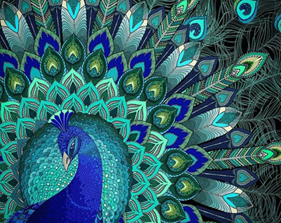 "Алмазная живопись" №37 Набор для изготовления картины из страз АЖ-1396 "Узоры павлина" 50 х 40 см