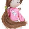 Волосы закреплены с помощью нитки в цвет пряди, сшитой зигзагом. Благодаря своей конструкции волосы не выпадают и крепко держатся на кукле.