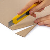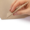 Переплетный картон обладает высокой механической прочностью на разрыв и излом,не гибкий, не расслаивается. Картон можно клеить, резать, сшивать, сверлить и т.д. Ножницами режется с усилием, поэтому при работе с ним лучше применять "Нож для художественных работ" или "макетный нож".