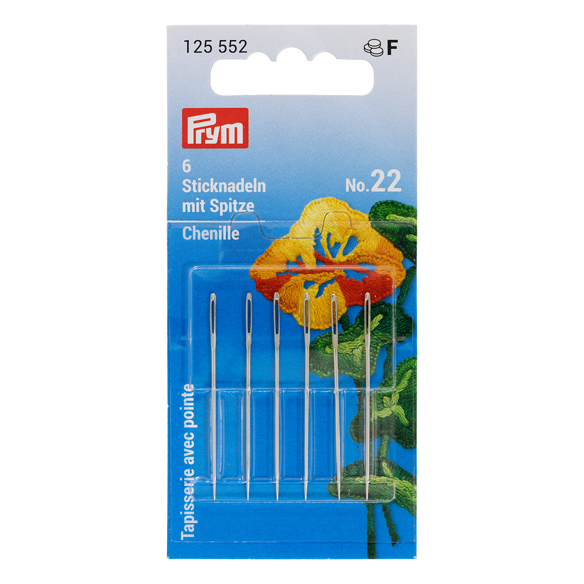 Иглы для шитья ручные "PRYM" 125552 для вышивания острые №22 в блистере 6 шт. .