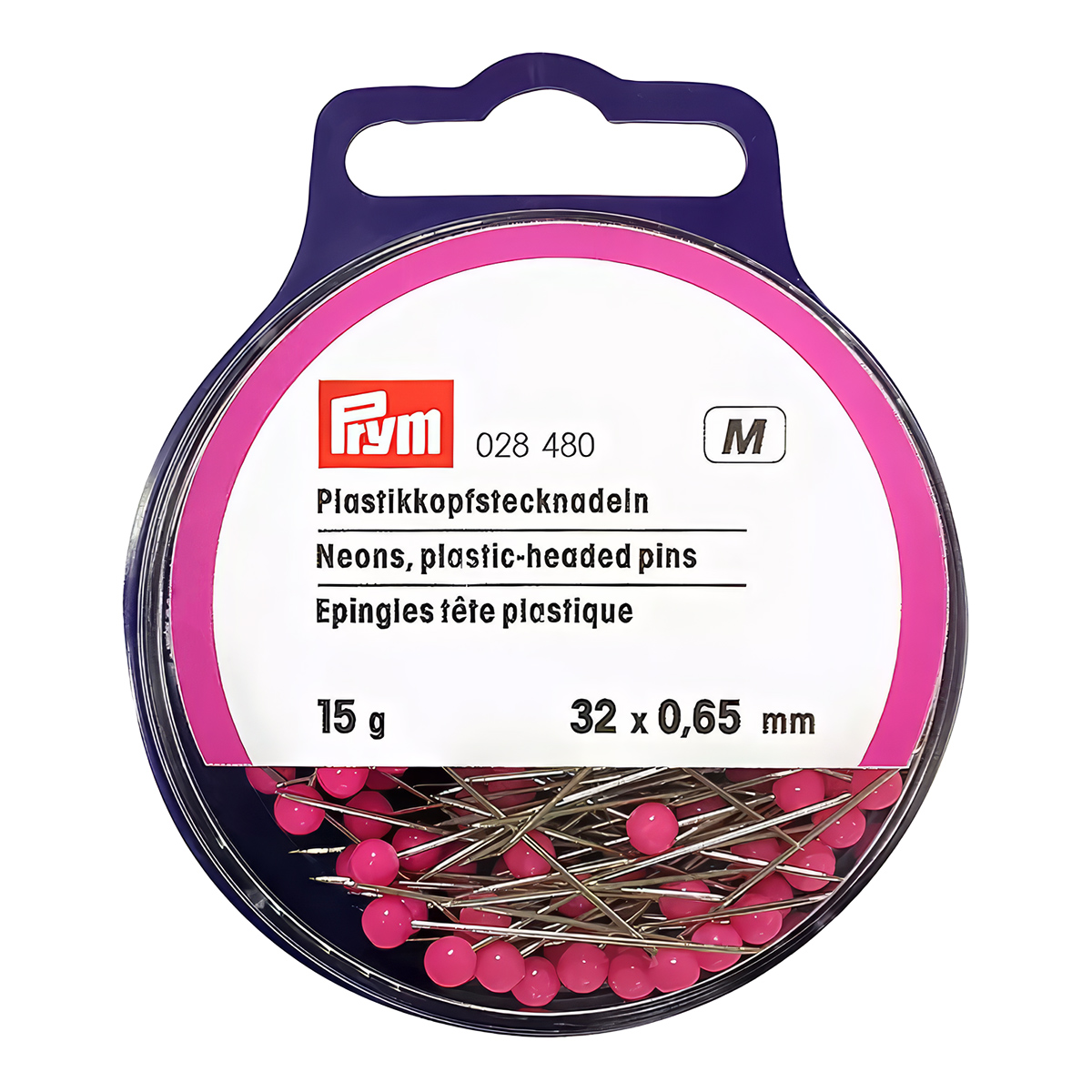 "PRYM" 028480 Иглы для закалывания "шарики" сталь 15 г 32 мм в пластиковой упаковке с европодвесом розовый неон