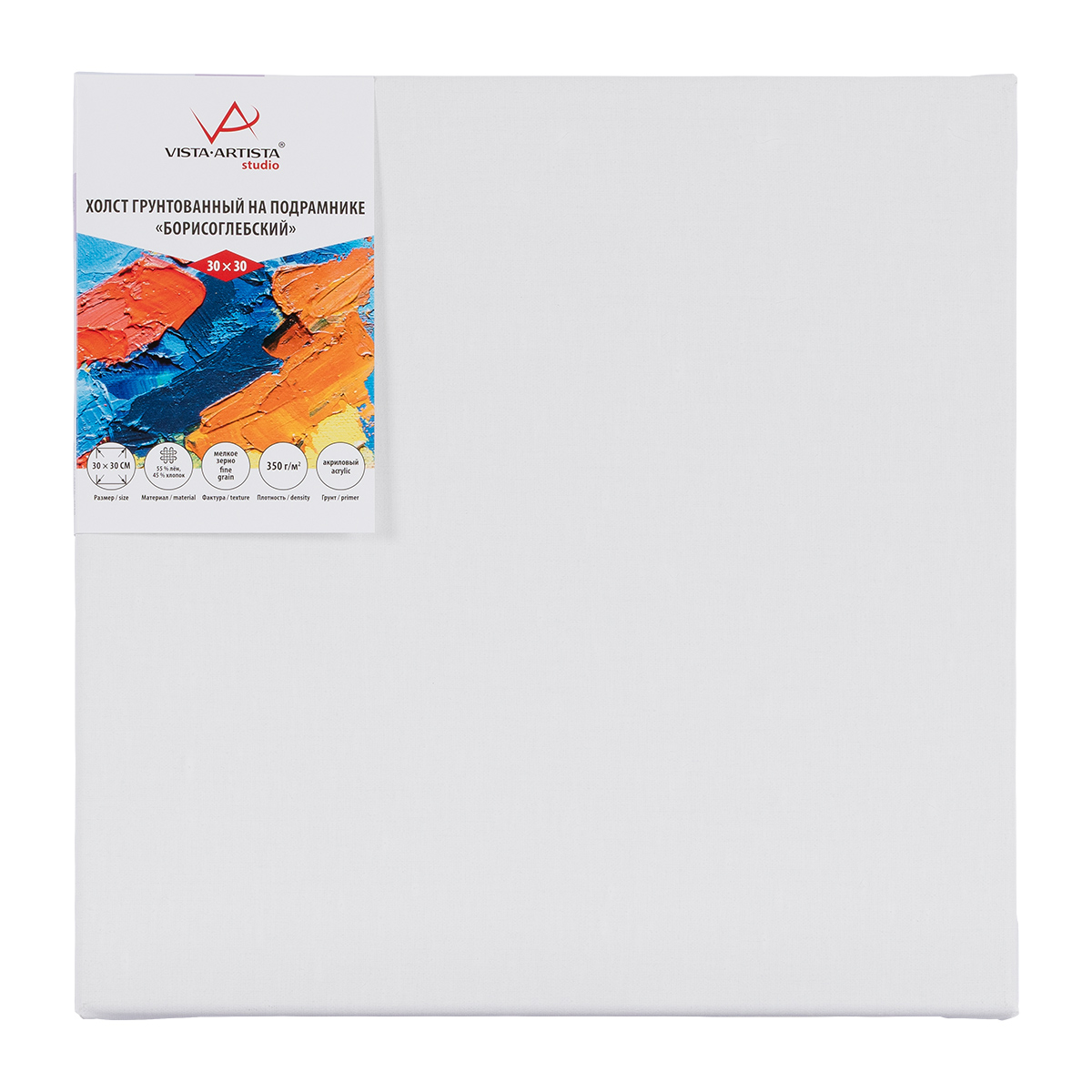 Холст грунтованный на подрамнике "VISTA-ARTISTA" AMFG-3030 55% лён, 45% хлопок 30 х 30 см 350 г/кв.м 2 шт Борисоглебский мелкозернистый