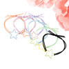 5 цветных резинок в нежных пастельных оттенках и одна черная, универсальная. Каждая из них украшена декоративной звездой из металла, добавляющей аксессуару изюминку и делая его по-настоящему уникальным.