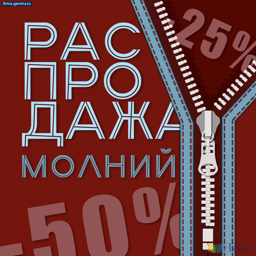 - Скидку 25% на широкий ассортимент молний, которые пользуются стабильным спросом.